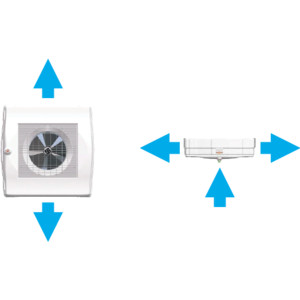 От 1 до 4 вентиляторов диаметром Ø 350 мм, оснащённых высокоэффективными электронными осевыми EC-двигателями с двумя скоростными режимами (уровни шума):